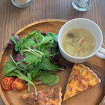 お休みの日に再訪です。 前回いただいたランチプレートは平日限定だったので今日はキッシュプレートにアイスのソイラテを付けました。 ここのキッシュ大好きです。さっくさくのタルトにトロトロで甘い玉ねぎと優しい味わいのベーコンや野菜。温かくてホッとする味です。 ウォーキングの終点にして歩いた後、ランチしました。 ほっとする味で、家の近くにあったら良いなと思える店です。 予約販売のケーキが大人気のようで少し待ち時間がありましたが、かわいいお店の中を見ながらほっこりしてました。