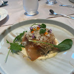 お昼のコースをいただきました。 桃のスープは、夏に美味しく、もものシャーベット感が、たまりません🤭 サラダも生ハムの下に、色々隠れていて、目でも楽しめました。 安定の美味しさで、同行の方も、見た目も味も美味しいですね ~と大満足❣️ このお店にしてよかったです。