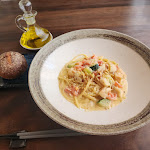 図書館から近くのお店。 前とお店が変わってて価格もお高めなので、 ランチでお邪魔いたしました。 ランチはメインをパスタか魚料理か選べて、 サラダと飲み物つき。 そのほかにもデザート、魚介の前菜、スープが追加でプラスできます。 今回は前菜とスープをプラスしてみました。 彩りがとても綺麗で、お味も量もちょうどよくいただけました。 初めてでしたが、このお味とクオリティーだったら、友達誘って行けるなーっと思いました。 今度はディナーで行ってみたいと思います。