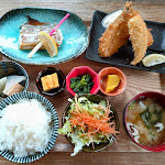 以前から気になっていたお店でしたがなかなか機会がないままでしたがようやく訪問することができました。 娘がガーリックシュリンプ定食。 妻が地魚の唐揚げC定食。 私はアジフライと地魚の刺身B定食。 地魚の唐揚げは太刀魚、小アジ、キスがカラッと揚がってます。 B定食の刺身は太刀魚の炙りとアジ。 太刀魚の皮が炙ってあり、香ばしくて美味しい。 アジフライは身が厚くて食べ応え抜群。醤油をちょろっと垂らして自家製タルタルを乗せて口に運べば… う〜ん美味い‼️ ガーリックシュリンプもいい香りが漂って来て、匂いでビールがすすみました。 平潟湾を見ながら五月の風を感じての食事は最高でした。