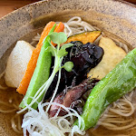 地元で人気のお店です。ファミリーはもちろん、お友達同士、仕事仲間でいらっしゃる方も多く、いつも賑わっています。写真はひやかけ野菜素揚げ蕎麦(おろし付き)。蕎麦御膳(ミニ丼のセット)を頼んでいる人も多いです。