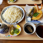 お昼に邪魔しました。 ミニ丼ぶりとミニおうどんのセットにしました。 うどんの大盛は無料でした。 ありがたいですね。 もうひとつは天ざるうどんを注文。 こちらのうどんも大盛無料でした。 さらに、ふりかけごはんも無料! ありがたいですね。 美味しくいただきました。 接客はとても爽やかでいいです。 強いて言えば、トイレのバンドペーパーが取りにくいのと、テーブルに紙ナプキンがあればいいと思いました。