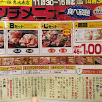 ランチの9税込80円食べ放題を利用。最初はA,B,Cのセットを注文する必要あり。その後は好きな組合せで注文可。しかし、最初はCセットのレバー、ハツのセットを注文すべき。何故ならCセットは限定てなくなり次第終了するからであり、一番美味い。なにせ朝とりした新鮮なレバーは必食。最高の食感と旨さ。塩ダレ付いているが、素材の味を生かす最低限であっさりと美味い。口中でぷっつんと弾ける食感はなかなか味わえない。地方からわざわざ食べにくるレベル。 サラダは玉ねぎのみだが箸休めに最適。スープは濃すぎて苦手。ご飯は、昼一番に関わらずダマになっており、それ程美味しくない。味噌ダレの肉を食べたときに勢いで食べる。それ以外はひたすら肉を食べる。 8月末まで、お薦めの「あみレバー」がチケットを見せれば無料で追加。これも絶品、美味いがお腹にずっしり来るので量を食べるなら避けた方がよいか悩む。 下手に高級焼き肉よりはるかにコスパよく、美味いので体験することをお薦め。