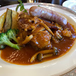 初めて来店。店員さんのオススメで、ハンバーグのキノコクリームソースをいただく。 オススメ通り、ナイフを入れた途端、肉汁が溢れてきて、いい香り。 お肉も柔らかく、ソースもまろやかで塩加減もちょうどいい。 ライスとパンが選べるのだが、これはピンにしたほうがよさそうだ。 そのほうが、ソースを余すところなく食べられる。