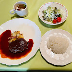 サービスディナー、ほんとコスパいいです! メインの他についてくるサラダとスープとパンがどれも大きい💦 ドリンクとデザートを食べる頃にはお腹がパンパンになっています。 旦那さんはここの口コミで見たきゅうりのサラダが大好きになっていつも別オーダーしてます。 私はセットの野菜のクリームスープが大好きで、今日は単品タンシチューだったので、別オーダーしてしまいました。 タンシチューも常連さん頼んでいたのでいってみましたが、美味しかったです。 お店は落ち着いててとても居心地がよいです。スープ美味しいと言うとお母さんが作り方を教えてくれました。 とっても満足です(о´∀`о)また来ます!