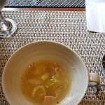 何時もは、ランチパスタランチセットでしたが、先日は🅱コースにしました! 前菜の生ハムに、ウリが入っってとても、美味しかったです❢ どれも美味しくて、パスタランチセットとは、違い豪華でした! 次は南瓜の冷製スープ、こちらは、スープが 絶品ですね〜!ほっかっちゃもびみ! パスタは、雲丹がタップリと入ったパスタに感激しました❣ 肉料理は、鴨のソテーでした! 最後はデザートに紅茶、相方はコーヒー🍝🥗☕ 全て、手の混んだプロの味に満足のランチでした!