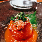 オーダーしたのは舌賛おまかせセットというコースメニューだったんだけど、これがわずか5500円でかなり満足度の高いコース。 先ずは前菜の三種盛りが2皿。梅干しのキムチは特筆するほど美味しかったです。 チョレギサラダを食べた後は燻製のユッケ。バランスの良い味わいの燻製ユッケでした。 そして、7種盛りのお肉のプレートはインパクトも合ってなんだかとても嬉しい限り。 出汁焼肉が売りみたいなことが書いてあるけど、一番メインっぽいこのコースには出汁焼肉が含まれていないから要注意です。 追加でミスジといちぼを頼んでそっちで出汁焼肉を楽しみましたが、これはなかなか美味しかったです。 シメにユッケジャンのスープまで出てくるので、かなりのボリュームが合ってどのお肉も美味しくて5500円とは思えないコースでした。