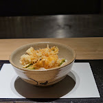 帯広の旅行の際に連れと夕食として利用させて頂いた。 店はフロアの一角を椅子が6つ入る程度に仕切った感じでキッチン対面の様相。要予約。 采配ミスで15分くらい早く着いてしまったが快く声をかけてもらい入店。 表の料理人は1人で穏やかな方。後述だが塩派。 せっかく来たのだからと7000円のコースと弱いので味が分からなくなってしまうと困るので2人で1合の日本酒。 急かされず、待たされず絶妙なタイミングで料理が進みお酒も進む。酔いも回る。 料理はどれも丁寧な感じで味付けも優しい。先付けはこの先を期待させつつもお酒に手を伸ばしたくなるような味だし、お造りもワサビがしっかりと効いて新鮮。 天ぷらはあまり高級なところへ足を運んだことが無いのが原因なのか衣の薄さに驚き、衣の存在感に驚き、素材の味に驚きと全てに驚くことばかりだった。 人生まだまだこれからで様々な方が読むレビューで無知晒しも良いところなのかもしれないが暫定人生1位だと思っている。 対面式の醍醐味はやはり料理人との対話だと思う。口数が多い方ではなかったが素材とお勧めの食べ方、そしてそれについての何か一言を必ず添えて出してくれた。 天ぷらの前に天ツユやスダチ、大根おろしも用意して下さったが何故か常にお勧めは塩で、そして一番美味しいと思えたのも塩だった。道外れた時は少し後悔した。 写真には写っていないとっておきが実は1枚あるのだが、それは是非、読んでくださった方に実際に足を運んで貰って確認して欲しい。自分が写り込んでしまったのもあるのだが… 帯広旅行のとっておきの思い出になった。 またもう少し見聞を広めて理解が深まるようになったらまた是非訪れたいと思う。感謝。