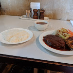 土曜日の13時頃にお邪魔しました。 駐車場はほぼいっぱいで、席もぎりぎり並ばず座れるくらいの混み具合でした。 昔ながらの洋食屋さんと言う感じでレトロな雰囲気が○。 ランチのチキンカレーとチーズハンバーグのそれぞれセットを頼みました。 カレーは少し辛めで食欲進みます。ライス大盛りだと結構なボリュームになります。 チーズハンバーグは写真の通り子供の顔くらい大きく大満足ですが、たっぷりチーズで子供も満足でした。 近所にこう言う洋食屋さんがあると嬉しいですね。次は日替わりランチを頼んでみたいと思います。