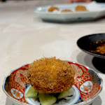 【さんま黒焦げ食堂】の田中シェフが、京橋駅付近に2023年5月にオープンした中華料理店。 常連様に誘って頂き初訪問です。 いつもありがとうございます^ - ^ L字カウンターの内観が素敵。 ◆おまかせコース 12100円+〆ごはん追加 メニューは、ご一緒したレビュアー様が文字起こしして下さり、とても助かりました。 ①すっぽんの茶碗蒸し ②北海道新いくらの紹興酒漬け ③ クラゲの甘酢和え ④甘栗の焼売 中国山椒 ⑤蓮根の酢漬け 山椒の粒 ⑥無花果の白玉粉揚げ 豚バラ・発酵唐辛子・ニンニクの芽のソース ⑦和牛もも肉(まるしん)のしゃぶしゃぶ よだれ鶏仕立て ⑧愛媛県愛南町のクエの蒸し物 茄子 白葱 梅肉 ナンプラー ペリーラ(大葉の若葉) ⑨伊勢海老のXO醬炒め 〆ごはん: ⑩豆乳と卵黄を絡めた麺 よだれ鶏のソース ⑪鰻の炒飯 ⑫冷たい坦々麺 ⑬麻婆豆腐 白ごはん ⑭葱汁そば デザート : ⑮愛玉子と山査子のゼリー2種盛り ココナッツミルクソース 【ドリンク】 □紹興酒 澄籠 ロック □オレンジワイン アンドルファー パーセー ボトル 最初から最後まで全て美味しかったです! 特に無花果の白玉揚げ、和牛もも肉のしゃぶしゃぶ よだれ鶏仕立て、伊勢海老のXO醬炒め、麻婆豆腐が好みでした♡ 其々の料理のソースが美味しく、田中シェフが中華鍋を振る姿が目の前で見れるのも、躍動感があり凄く楽しかったです。 〆は4品の中から2品まではコース料金内みたいですが、全部味わいたくて、小盛りにして頂き4品頂きました。 4品にして正解でした。 これだけのコース内容だと、コース料金だけで2万円前後のお店が多いですが、お酒を飲んでも2万円いかないのは驚きの高コスパです。 幹事様ありがとうございました。 とても美味しかったです。 ご馳走様でした。