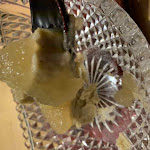 西麻布交差点すぐ。 裏路地に入り口があり少々わかりづらいですが 予約時間になったら、お着物のスタッフが外まで出迎えにきてくださり。 席につくまでの廊下のインテリアも素敵。旬の食材をふんだんに使った全8品のコース (1万円)を堪能しました。 まずはペリエジュエで乾杯。 ボトルでいれたのにあっという間になくなっちゃいました。 お料理ととても合っていたからいつも以上に進んじゃいました。 ~先付け~ ラ・フランスと柿の白和え、車海老、土佐酢ジュレ掛け ~お椀~ 白身魚葛叩きと蓮根餅のお椀 ~お造り~ 高知県から3種盛り合わせ ~八寸~ 季節の食材6種の盛り合わせ ~焼き物~ 秋鮭の朴葉焼き カウンター席に通していただき、 ~留鉢~ 小蕪と子持ち鮎の炊き合わせ ~お食事~ 三瀬鷄or松坂牛の土鍋ご飯、赤出汁、香の物 (仕入れによって変わります。) ~甘味~ 栗のプリン、焼きりんごのせ どれも洗練された美味しさ。 供されるお皿もどれも美しく、 温かいものはお皿も熱湯の中にくぐらせてあったりと おもてなしの気持ちが伝わる料理の数々。 ほうじ茶も香ばしくて美味しくて。。。 仕込み中の自家製カラスミがとても気になりました。 コースは月ごとにかわるということで これは毎月通いたくなります。 お店のあちこちに”カエル”のオブジェが飾ってあって かわいいです~(探してみてくださいね) 通いたいお店のひとつとなりました!