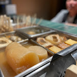 金沢の夜、予約して行きました。 カウンター席について、好きな箸置きを選んだら、早速飲み放題の生ビール(プレモル香るエール)で乾杯!一番人気のお刺身盛り合わせは、自家製醤油をつけて頂くマグロの大トロ、水だこ、イサキ、なめら(キジハタ)、ノドグロ、北海道産生うに、玉など、新鮮で手が込んでいてどれも美味しい!またお刺身の登場に合わせて頭上のミラーボールが回る演出。 金沢おでん盛り合わせ(8品)を注文している間に、越前ガニのカニクリーム春巻き、生桜海老と生ホタテと大葉の天ぷら(キャビア添え)も頂きましたが、どちらも美味しく上品な味。 金沢おでんはどれも美味しかったし、おでん大根の天ぷらに車麩の天ぷらも珍しくで美味しかった。 そして、若い店員さん達の感じも凄く良かったし、おもてなしの心にも癒されました。 実は当初、19時予約だったのですが、高速渋滞&事故通行止めで大幅に遅れる見込みになったので、電話したら、何と快く21時過ぎに変更してくれました。また電話で「お刺身盛り合わせが大人気なので、事前にご予約されるのをおすすめします」などの心遣いも嬉しかったです。 金沢に行く時は、必ず行きたいお店になりました。