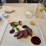 おいしいと噂のこちらのお店。 ようやく行くことができました!! 噂通り、めっっっっちゃ美味しかった。 もっと早く行っておけば良かったです。 こじんまりとしていて、お店の雰囲気も素敵。 マスターとマダムなのかな? お二人のお人柄もとっても素敵でした。 恐る恐る頼んだオススメの鹿肉が想像を絶する美味しさでした。 それが一番印象的だったかも! 一回行っただけで惚れ込んじゃいました〜。 また行きます。 【ランチコース】 ★お口取り ブランダート(白身魚のコロッケ) 生ハム カポチャのポタージュ ★パテクルート ピクルス、黒イチジクのコンポート、青梅のピューレ 前日に出来上がったので、パイのサクサク感を楽しめる極上品。 フォアグラがかなり効いていてリッチ感満載。 これはめちゃ美味しい。 ★真鯛の香草パン焼き ヴァンブランソース コクのあるソースと鯛との相性は最強。 白ワインが使ってあるソースだから、少し酸味がして、それが全体を引き締めてくれる。 水菜だったかな。下に敷いてある野菜も美味しかったぁ。 ★セップ茸とトリュフのリゾット 香り、食感、その両方を楽しめる。 雑穀米なのかな?色々な食感がしたのが印象的。 今回のコースでワンツーで美味しかった! こんな美味しいリゾット食べられたことに感謝。 ★エゾ鹿ウチモモ ポルト酒と山椒のソース クセがなく食べやすい鹿肉に目がハートになった! 柔らかくてジューシーで、これは凄い。 赤身だから肉そのものを楽しめる肉好きにはたまらないやつ。 それと、山椒がふんわりと香る濃厚ソースが最高すぎた。 ★デザート ・ほうじ茶のブランマンジェ ・チョコレートのソルベ ブランマンジェがフワフワでビックリ。 こんなにエアリーなのは初めてかも? そして、大人な甘さ控えめなダークなほうじ茶が良い。 ソルベも口当たり良く、スッキリと食べられて旨し。
