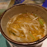 CASSIS ORANGE 初潜入 基本バーなのだが入口で靴を脱いでカウンターへ。 店内は思ったより奥行きがあって広々としている。 おしぼりは木の良い香りがする。檜かな? 先ずはビールで喉を潤す。瓶ビールはエビス。 突き出しはイサキの白子 梅醤油でさっぱり。 おつまみは常時10品ほど用意してある。 食事を兼ねて伺ったのでキタアカリとゴーヤと黒鮑茸の温サラダ、ヤングコーンの揚げ焼き、ヤムウンセンをオーダー。 ヤムウンセンは唐辛子🌶️の鮮烈な辛味とパクチーの香りが相まって旨い。 manjeのオーナーの投稿を見て美味しそうなお料理に惹かれたのだが、期待通りどれも美味しかった。 オーナーは浅く広くと謙遜なさっていたが、和・洋・中・タイ・韓などボーダーレス。 その上どれもクオリティが高い。 ビールの後はグラスワインを。 グラスワインもハウスワイン一択ではなく、ボトル売りとグラス売りを兼ねて数種類から選べる。基本はバーなので当たり前と言えばその通りなのだが中々楽しい。 白はアルザスのジュリアン・メイエーとオーストラリア ビンク・ワインズのシャルドネ。シャルドネは自然派らしくないバリックの効いた典型的なシャルドネ。ビオ臭くないのがいい。 次はヤムウンセンに合わせてイタリアのオレンジと日本のロゼを。オレンジはノンフィルターで濁りがありよくあるナチュラルらしい味わい。ロゼは色が濃く、MBAらしい苺キャンディの香り、飲んでみると甲州由来の酸が全体を引き締め、クリアで爽やか。 日本酒も季節柄夏酒を中心にいい銘柄が揃っている。 16時から開けているので早い時間に伺うのがゆっくりできて吉。 ご馳走さまでした。