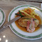 えび100%ハンバーグランチを食べました。プリップリで美味しかったです。 近所の方の憩いの場的な落ち着いた雰囲気のレストランでした。 入店した瞬間、ガーリックなどの良い香りがして、幸せな気持ちになりました。