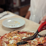 お店は代々木駅から歩いて10分ほどのところ。店内には巨大なピザ窯が鎮座するこれぞピッツェリアという造り。 料理はおまかせのみのようです。前半は前菜やサラダをワイン片手につまみつつ、場が温まった後半一気にピッツァを頬張り尽くすのがここでの楽しみ方みたい。 この日は店主のおまかせでピッツァ6枚、さらに2枚を追加して計8枚を6人で軽く完食。 前半の前菜はワインに合うように比較的強めの味の料理が中心。良い素材を使ってしっかり作り込まれてて美味。後半のピッツァに向け徐々にテーブルが盛り上がっていく感じが楽しい。 ピッツァは普段から口にしている生地に厚みがあってもちもちしたナポリピッツァとは全くの別物。生地は薄く、具材の乗った真ん中寄りはしっとり、端はパリッとクリスピーな食感。おおっ!これは確かにうまい!しかもいくらでも食べられてしまう(笑) チーズを初めとする具材の組み合わせも多種多彩で全然飽きない。これはハマる人が続出するのも納得。